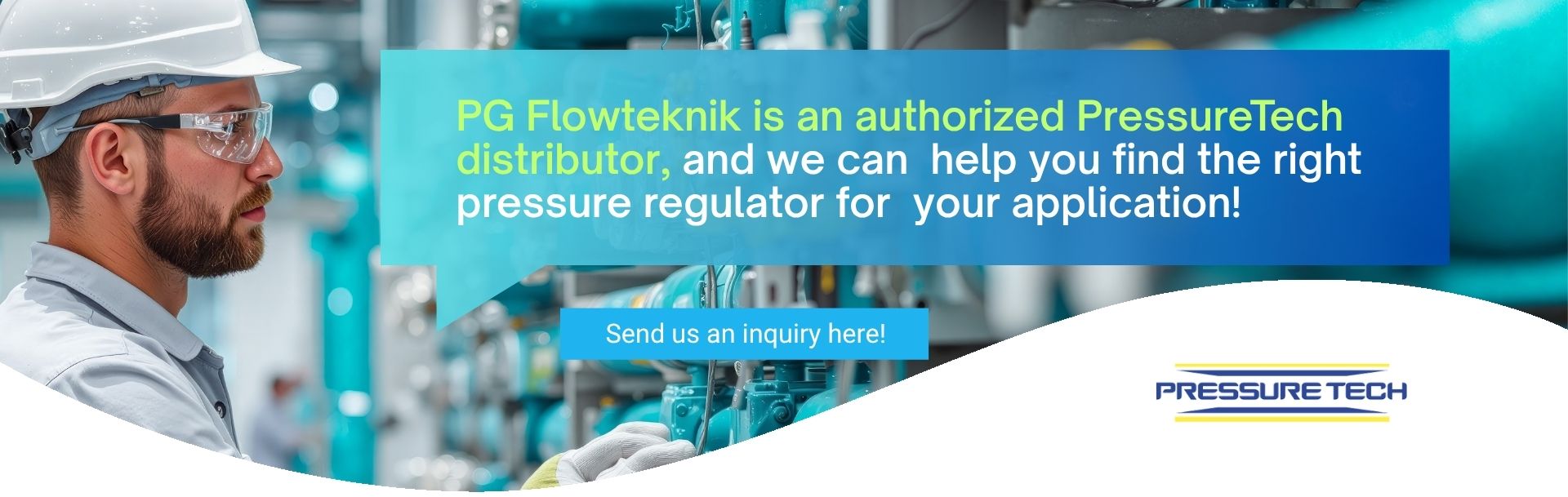 Pressure Tech At PG Flowteknik, we know that the right regulator is not just about specifications on paper – it has to perform in real-world conditions. That’s why we always base our advice on your application, your media, and your specific requirements. Together, we find the solution that delivers the highest value and the longest service life. As an authorized Pressure Tech distributor, we provide daily guidance on sizing, material selection, and configuration of regulators for both standard and specialized applications.